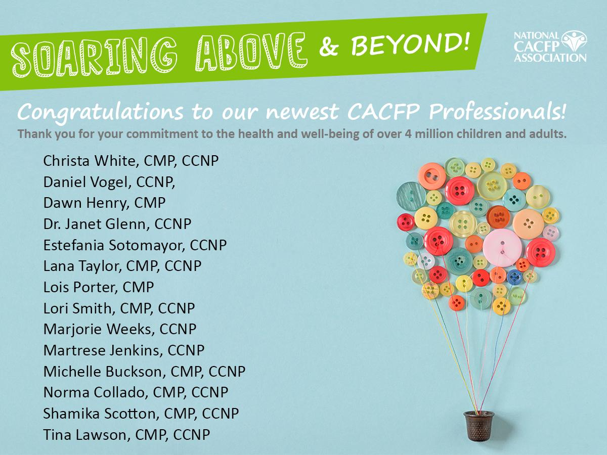 Candidates with the CACFP Professional designation stand out among the crowd. If you're looking to enhance your professional image, it's time to pursue your CMP or CCNP. You may already qualify!