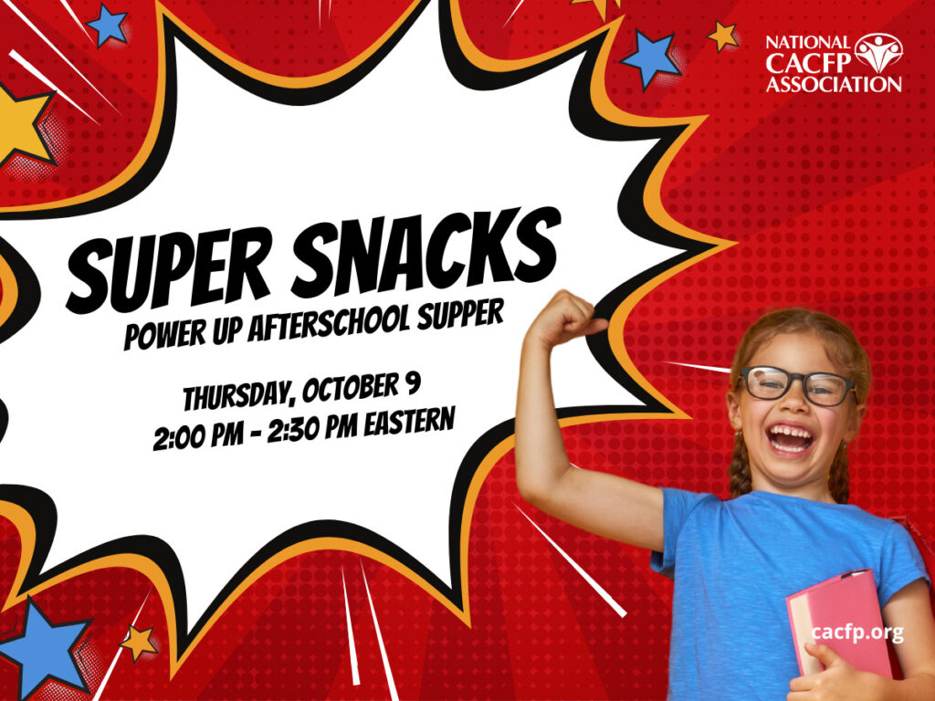 Join us on Thursday, October 9 to learn about how to create "Super Snacks" for your afterschool program that are both creditable and kid approved. After the webinar, we'll also send you a free handout with three ideas to build your own Super Snack. This event is free for NCA members.